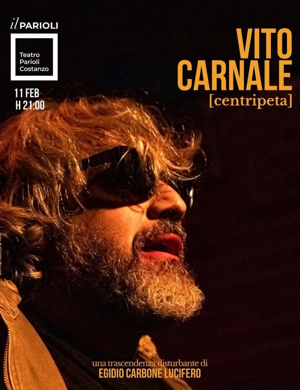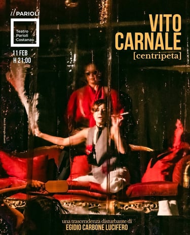 Io, me stesso e confine di me è il titolo del monologo frammentato con cui Egidio Carbone Lucifero debutta come drammaturgo, regista e attore nel 2002 e si rivela al pubblico, per lo più conoscenti, per la prima volta. È in questo modo che comincia a prendere confidenza e a conoscere il suo modo crudo, diretto e maledetto di fare arte. Il testo e la sua rappresentazione si fa spazio nella curiosità del pubblico che diventa sempre più numeroso e appassionato, e viene pubblicato nel 2005 da Ripostes editore. Negli anni successivi seguono altre rappresentazioni e altre opere con le quali l’artista si fa conoscere sul territorio dove vive ma è nel 2007 che pubblica l’opera che gli dona da subito la possibilità di coinvolgere un pubblico di appassionati sempre più numeroso, La Bufaliera, Falco Editore 2007. La prima rappresentazione dell’opera avviene nel 2008, poi repliche fino al 2010, anno in cui l’opera approda al prestigioso Teatro San Carlo di Napoli. Nel 2011 La Bufaliera viene tradotta in lingua araba da Mohamad Salmawy, la prestigiosa firma egiziana pubblica in Egitto l’opera di Egidio Carbone Lucifero riscuotendo un grande successo. Seguiranno negli anni altri allestimenti fino al 2024 anno in cui l’artista scrive e gira il film tratto dall’opera, film ancora non presentato al pubblico. Egidio Carbone Lucifero continua a sperimentare, studiare e scrivere per il teatro e intanto sempre più artisti, noti e meno noti, scelgono di collaborare con lui alle sue opere. Dal 2011 al 2013 l’Università degli Studi di Napoli Federico II, in special modo la facoltà di ingegneria dove lo stesso artista è stato studente e ha ideato la sua teoria, gli concede la possibilità di usare i laboratori di diagnostica e sperimentazione sui materiali. È così che Egidio Carbone Lucifero può, con un gruppo di artisti e insieme a un gruppo di scienziati, approfondire la sua idea sperimentale. Nel 2013 la prima presentazione ufficiale al pubblico, poi molte altre. Dal 2014 sperimenta il Costitutivismo, nella rappresentazione cinematografica. Nel 2014 debutta la sua prima opera per il cinema, al cinema Metropolitan di Napoli proiettano Guado [Ita, 37 min], poi nel 2016 nella stessa sala napoletana, debutta la sua seconda opera cinematografica dal titolo Caligo [Ita, 45 min]. Nel 2021 viene presentata la prima di Il mistero di Nylon [Ita, 8 min], nel 2024 gira il lungometraggio La Bufaliera [100 min circa, in prossima uscita]. Da 2010 l’artista napoletano comincia a definire le sue opere teatrali e cinematografiche come Trascendenze. Le tre trascendenze cinematografiche (Guado, Caligo e Il Mistero di Nylon) vengono proiettate nelle sale delle città di tutto il mondo tra le quali New York, Philadelphia, Parigi, San Pietroburgo, Mosca, Novosibirsk, Ekaterinburg e tante altre spesso registrando entusiasmo e sold out. Molte le proiezioni nelle città italiane tra cui ovviamente Napoli, Roma, Milano. In parallelo alle rappresentazioni cinematografiche, l’artista napoletano continua il suo lavoro in teatro e nel 2024 debutta con la sua trascendenza Ossessiva dal titolo Vito Carnale [centripeta] all’ottantasettesima edizione del Festival Off di Avignone in Francia. Ventuno repliche francesi, poi tappe italiane a Venezia, Napoli e Roma in stagione nel prestigioso Teatro Parioli. Nel 2024 debutta, anch’essa nella stagione del Teatro Parioli di Roma, un’altra opera inedita per il teatro, la Trascendenza Nevrotica dal titolo Lucifero e la Signora. Nel 2026 sono in programma i debutti di due inediti teatrali, le trascendenze Le confidenze di Libido e La Brama.